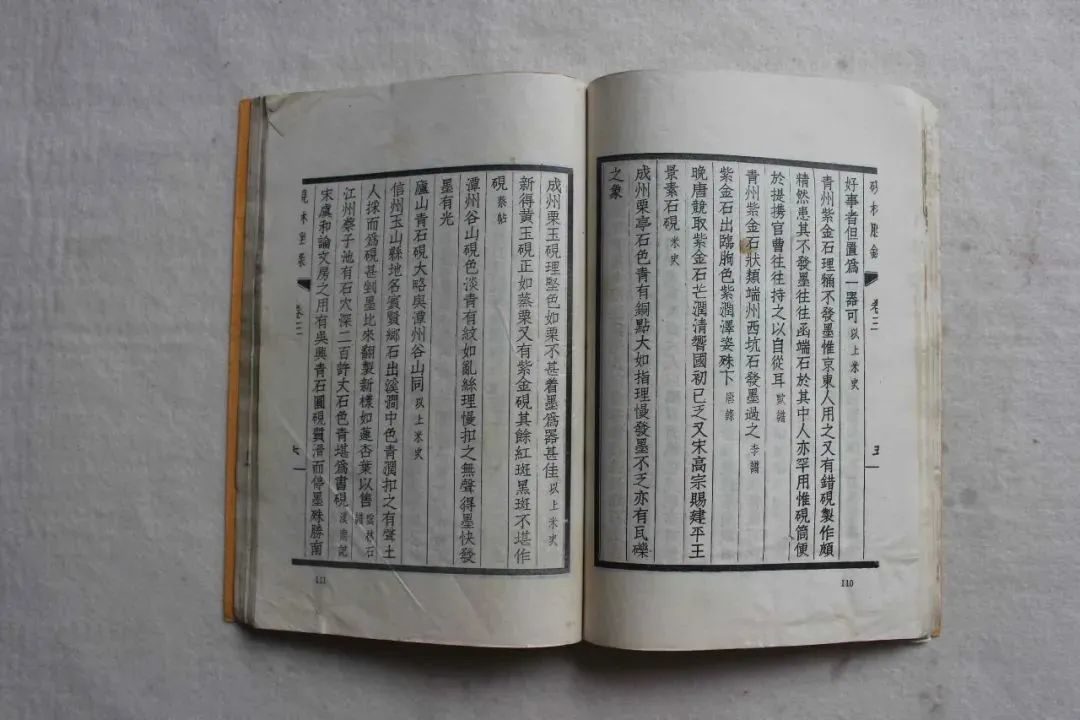 栗亭石,色青,有铜点,大如指,理慢,发墨不乏,亦有瓦砾之象。栗亭石料所制成的砚台,其色呈青色,且有如铜色之点,大者如指尖那么大。石质温润、纹理隐约其中。发墨生光发艳,旋转流畅,墨如油泛。还有碎瓦的特殊视觉效果,石纹清晰可辨,奇幻美妙。栗玉砚,理坚,色如栗,不甚着墨,为器甚佳。砚台纹理清晰,质地坚硬如玉。颜色如同野栗色。由于“栗玉砚”石质温润,坚硬如玉,所以米芾故有不太十分着墨之描述。米芾说:这种石料在制砚的同时,若能制作为实用性强或观赏性的器物是最好的。