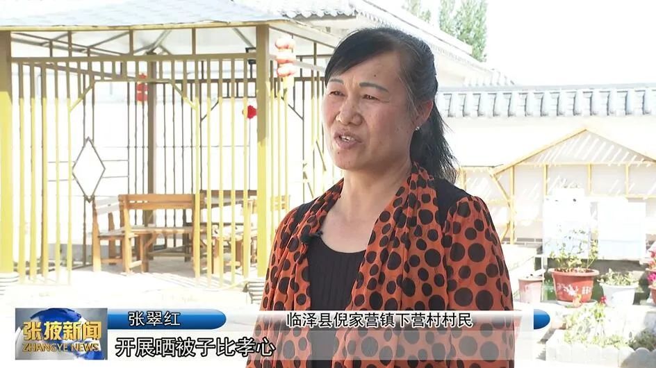 临泽县倪家营镇下营村村民 张翠红:“开展晒被子比孝心,就是对我们一个督促,督促我们每月把被子洗掉,家里收拾好。媳妇子都有一个比的心理,通过晒被子比孝心,把我们对老人的孝心展现的更好。”