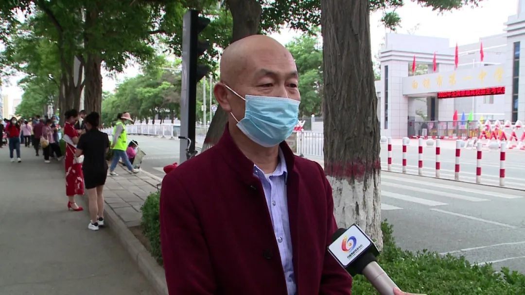 “过来陪孩子考试,希望孩子放平心态,正常发挥,我在这里给孩子加油。”