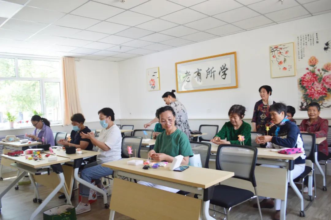依托综合养老服务中心,昌文里社区还开办了老年大学、社区党校,开设健身操、书画、舞蹈、编织、诵读、手工课等课程,让老人重拾“背上书包上学堂”的乐趣。