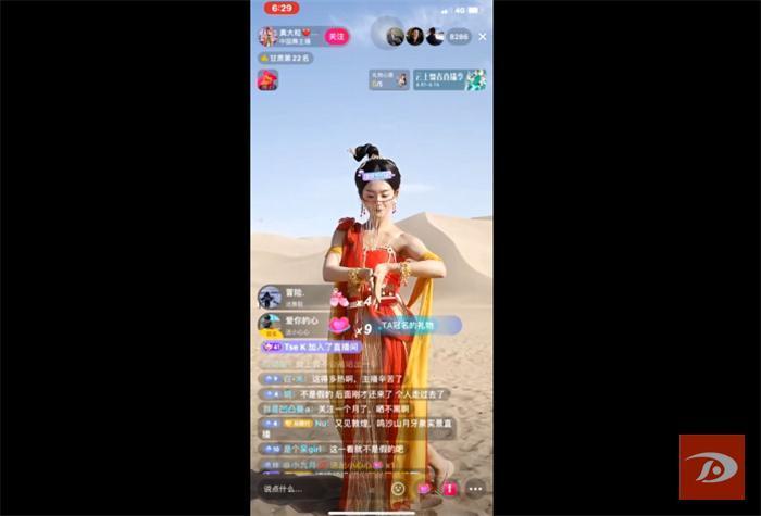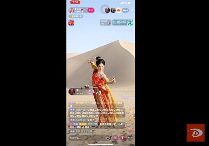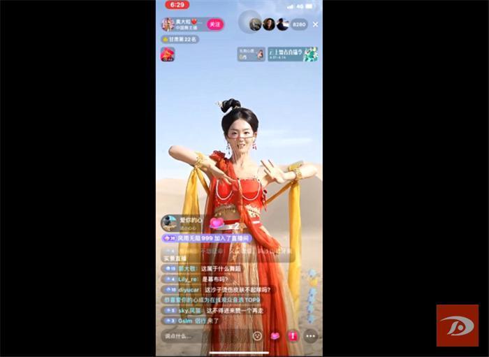 甘肃游客马进忠说:“我之前在抖音平台上看到过‘奥大粒’的直播,舞美人也美。这次很荣幸见到‘奥大粒’本人在敦煌直播,舞蹈特别震撼,直播也做得好。”