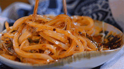裹满调料的呱呱香辣绵软,刺激着味蕾,一天的疲乏在这口呱呱里尽消了。