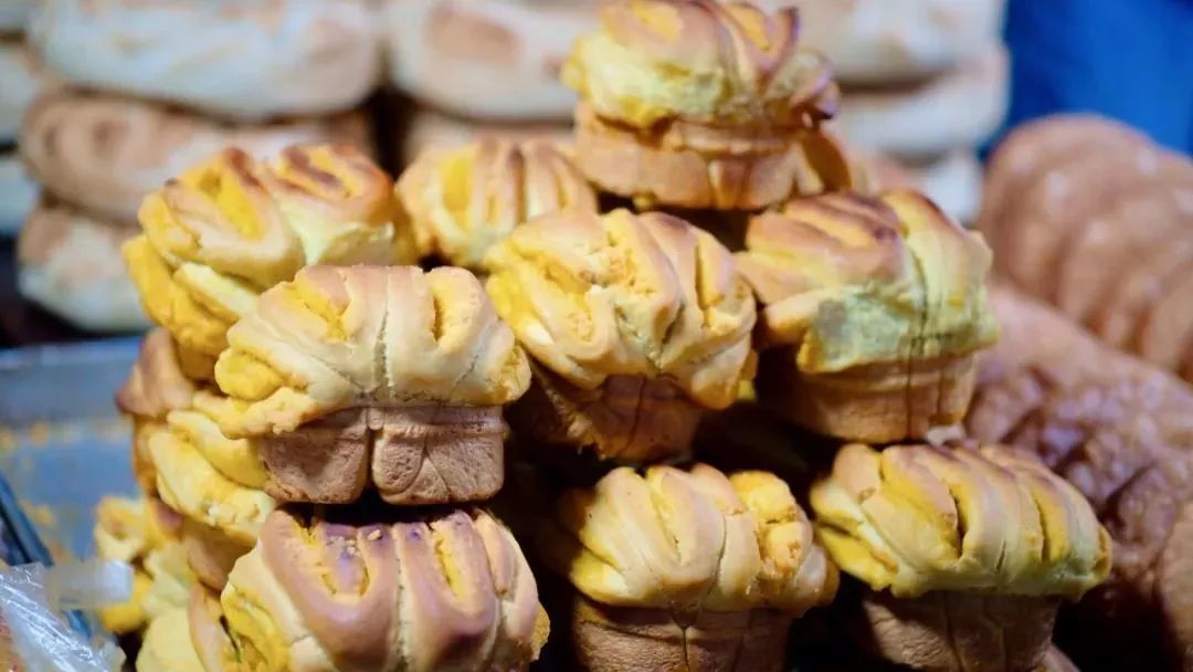如果说“主食”是天水的主力军,那天水的面食更是有一抹别致的味道,香气扑鼻的酥脆油圈圈,爽口多样的面皮,就馍而言,除了闻名的槐花伴着面香的焪(qióng)馍,还有各种烤的、炸的、加姜黄、杏仁、油酥的“花式馍馍”。