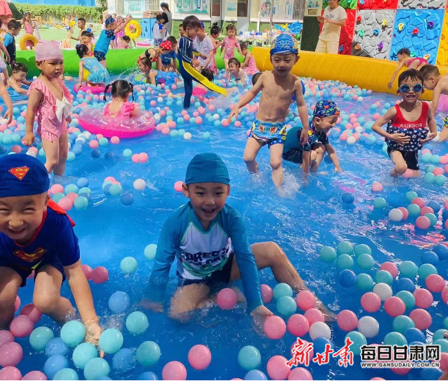 新甘肃客户端6月24日讯(新甘肃·每日甘肃网记者 郭秀睿)“好凉快啊,真开心哦!”今天下午3时,兰州市西固区兰玻幼儿园内,孩子们在游泳池里嬉戏,乐开了花。