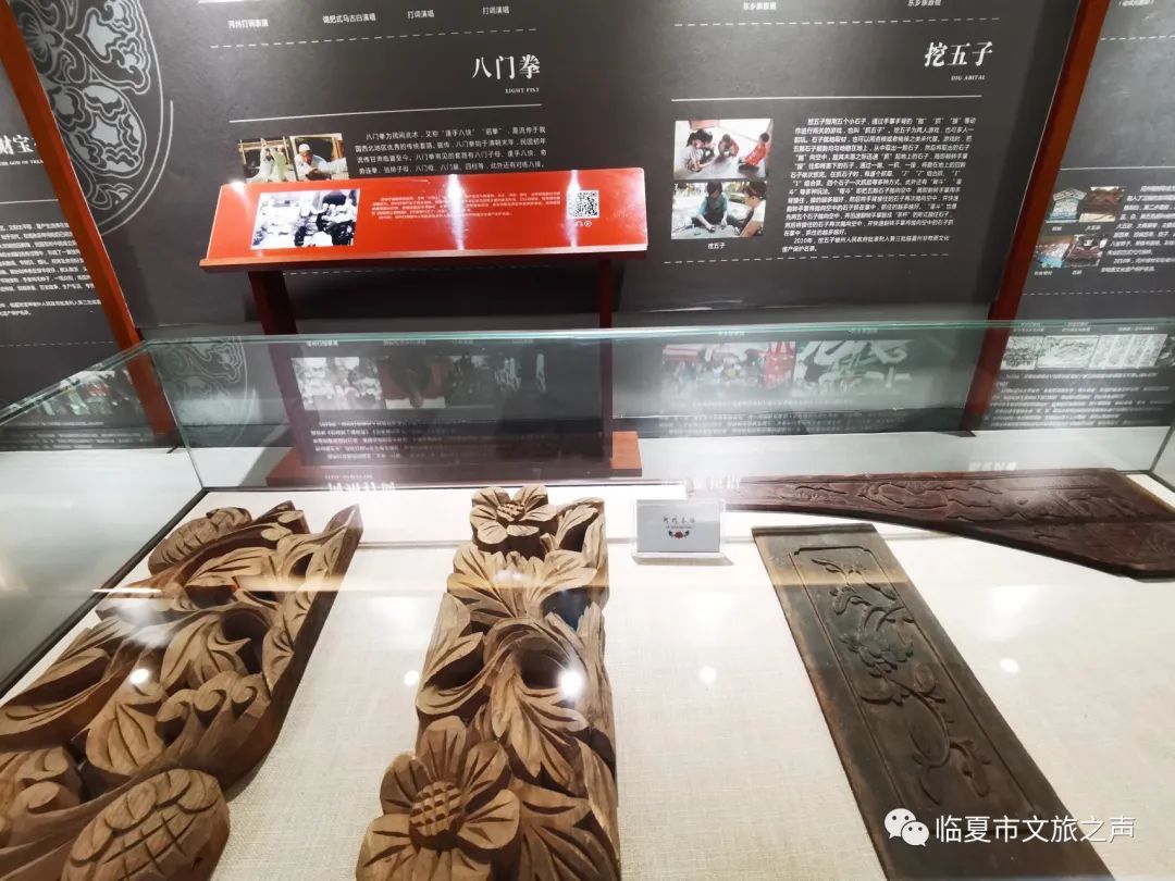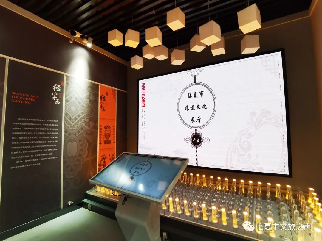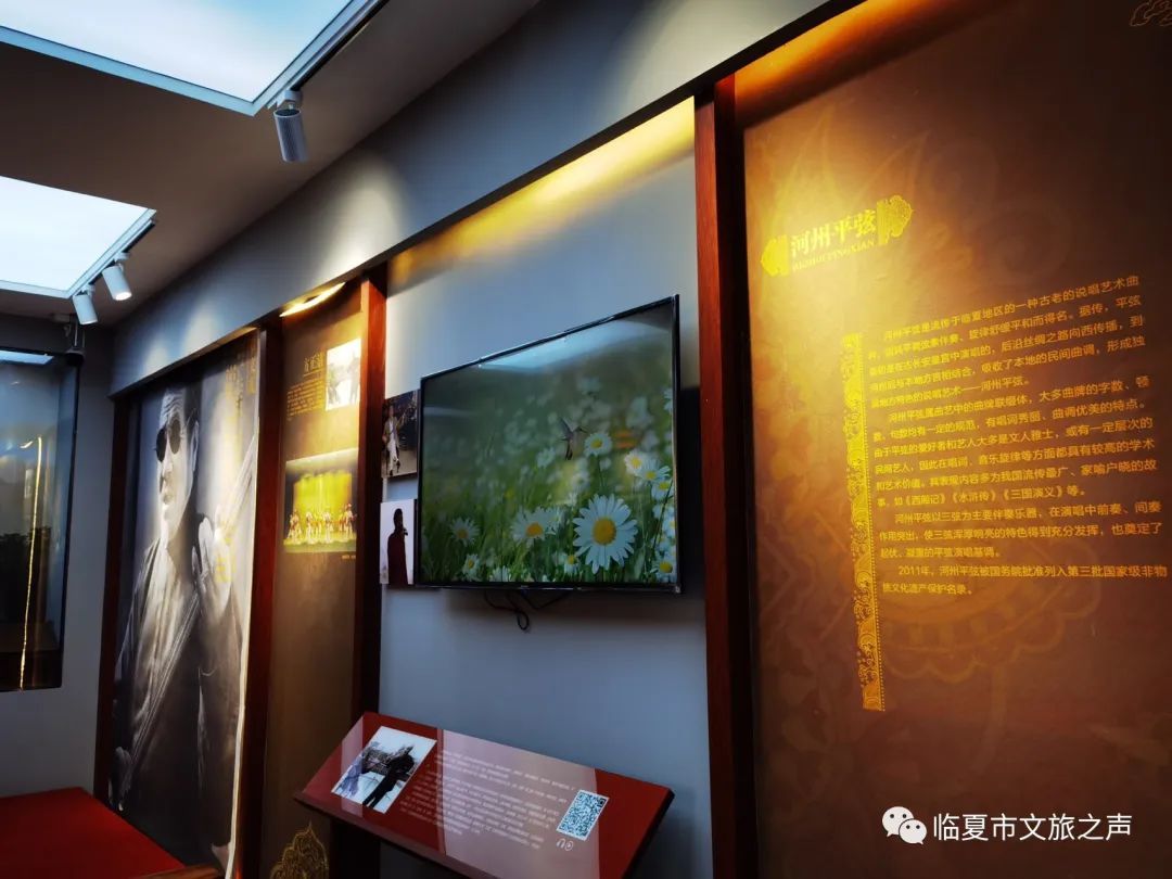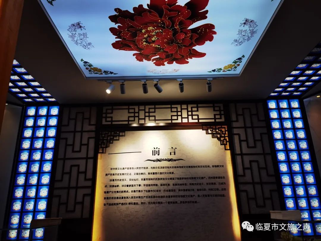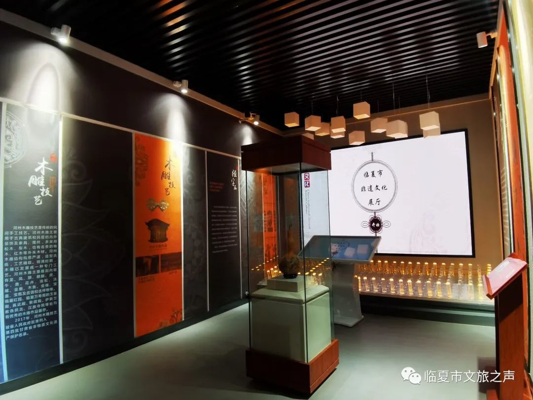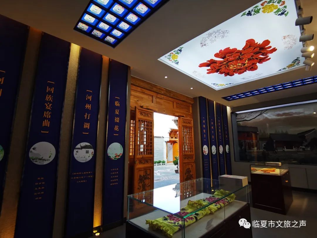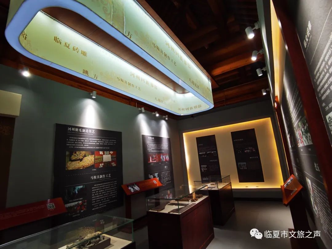 馆内陈列了国家级,省级,州级的各类非物质文化遗产,将全市国家级非遗项目2个,省级项目6个,州级项目38个非遗项目以图片展板,实物展示、宣传视频方式将临夏传统美食、节日、民间戏曲多方位展现出来,方便游客更全面的了解河州文化。这些临夏特有的文化产物也将为游客带来独具特色的观赏感和体验感。