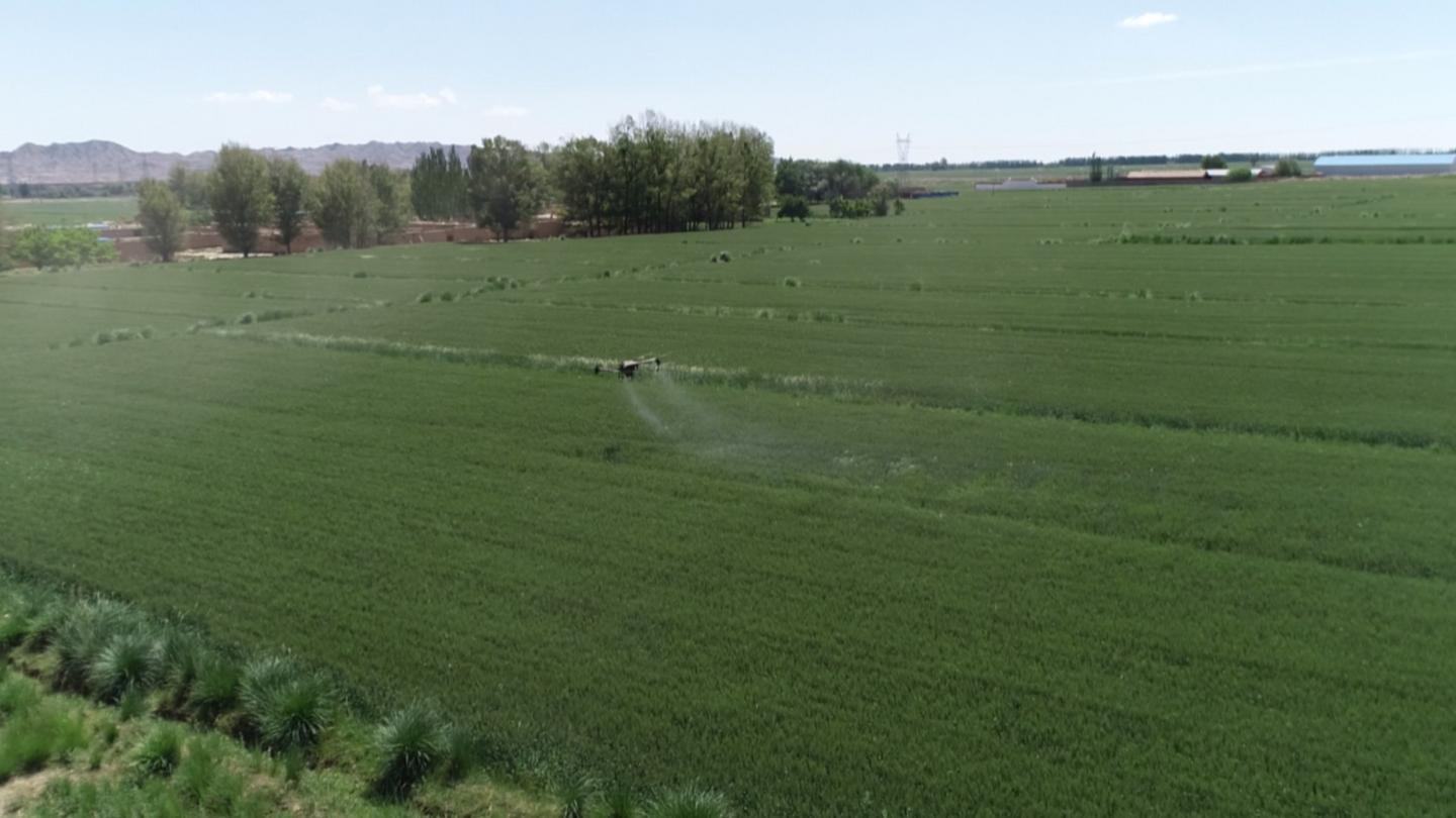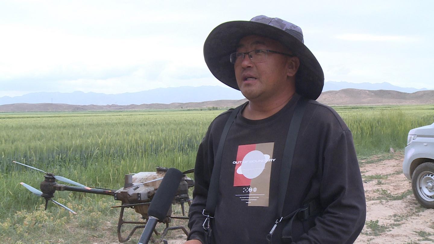 东寨镇双桥村党支部副书记 杨泽祥:今年我们村党支部成立领办的众兴汇农牧农民专业合作社,通过会议决定,多方注资购买无人植保机1台,采用农业科技新技术,对有需求的小麦进行“一喷三防”作业,不仅省时高效,而且安全系数高,还能大大降低人工等成本。