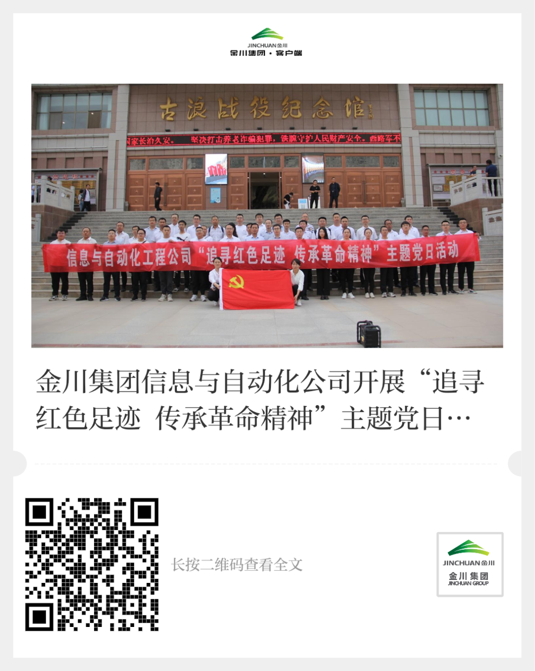 金川集团信息与自动化工程公司党委组织50余名党员、入党积极分子和党内先进代表前往古浪八步沙林场和古浪战役纪念馆开展“追寻红色足迹 传承革命精神”主题党日活动。