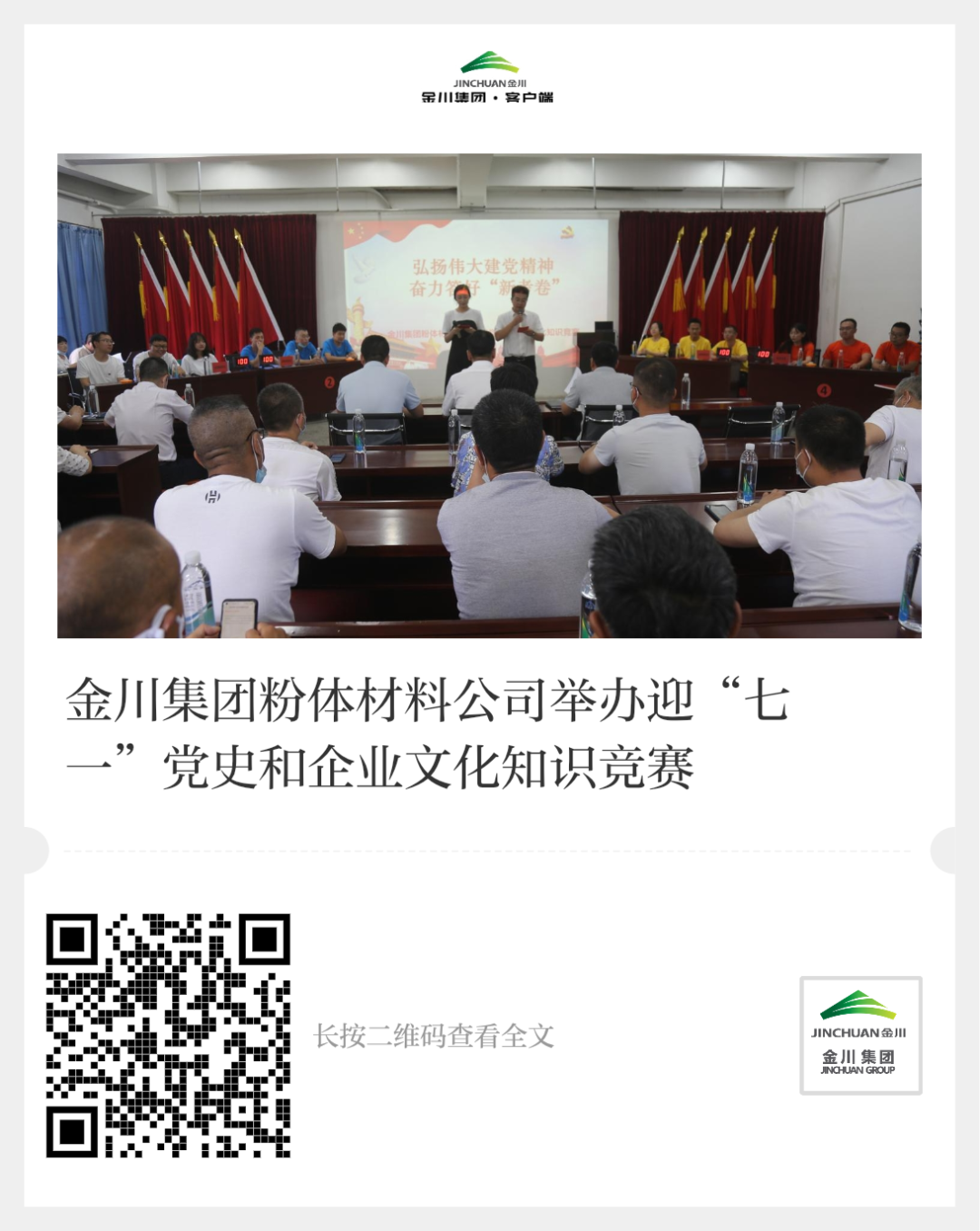 金川集团粉体材料公司举办“弘扬伟大建党精神 奋力答好新考卷”主题知识竞赛,庆祝中国共产党成立101周年,回顾党的光辉历程,讴歌党的丰功伟绩。