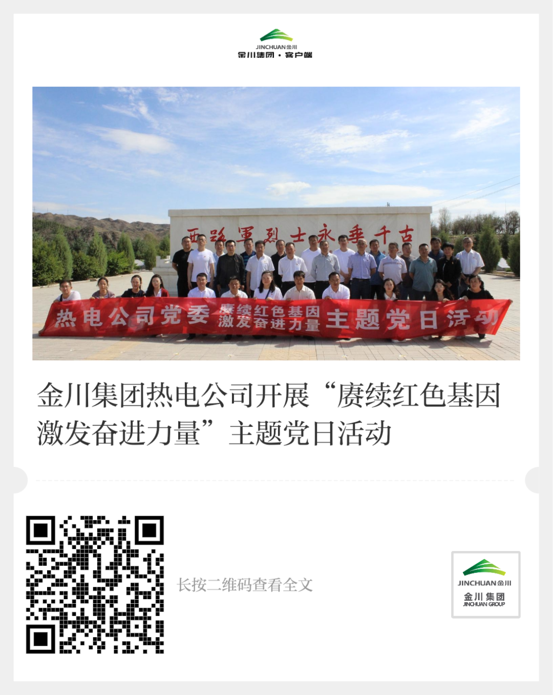 金川集团热电公司“赓续红色基因 激发奋进力量”主题党日系列活动在红西路军永昌战役纪念馆举行,向烈士敬献花篮,重温入党誓词,表彰先进集体及先进个人。
