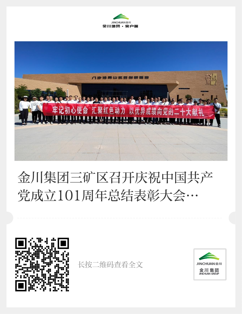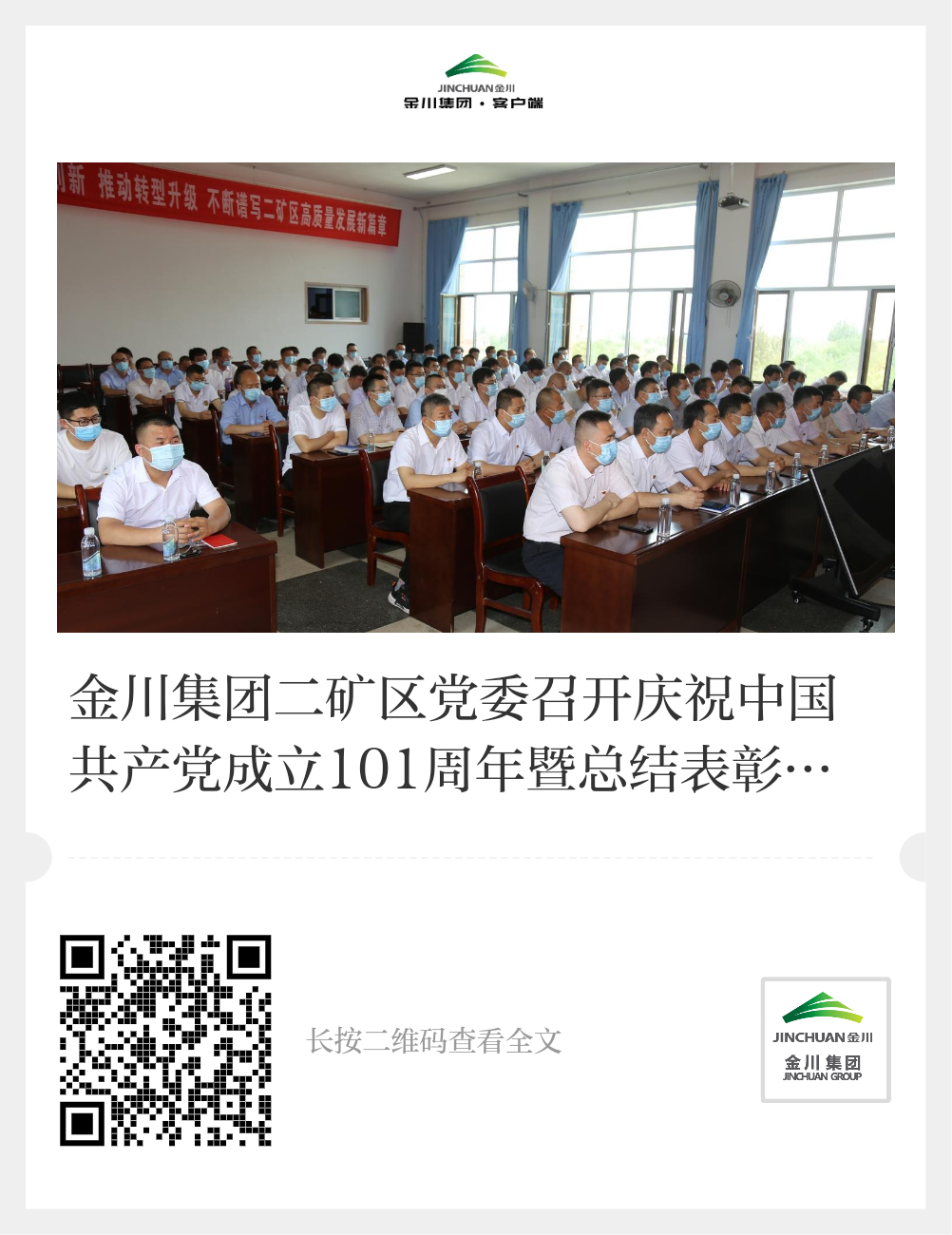 为热烈庆祝中国共产党成立101周年,回顾党的光辉历史和丰功伟业,金川集团各单位陆续开展庆祝建党101周年暨“七一”总结表彰大会,表彰近一年来在工作岗位上表现优异的基层党组织及党员干部职工,希望广大干部职工向他们学习,勇担使命、创新创效、破解难题,奋力开创金川高质量发展新局面。