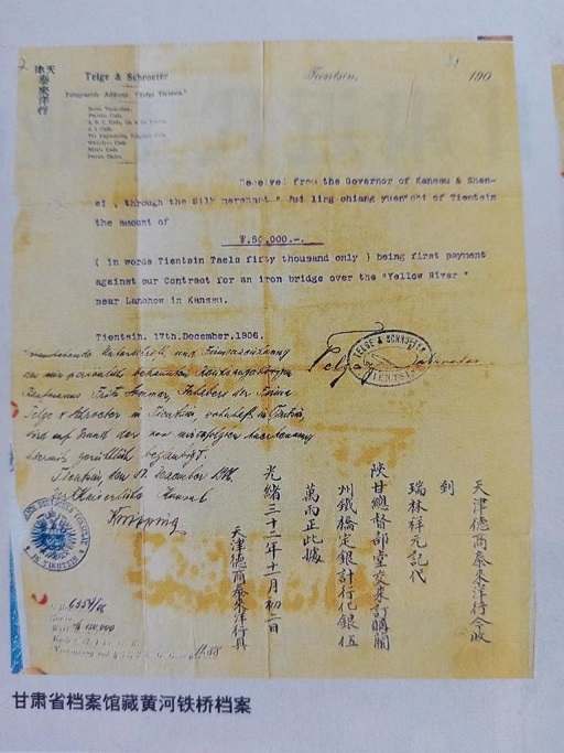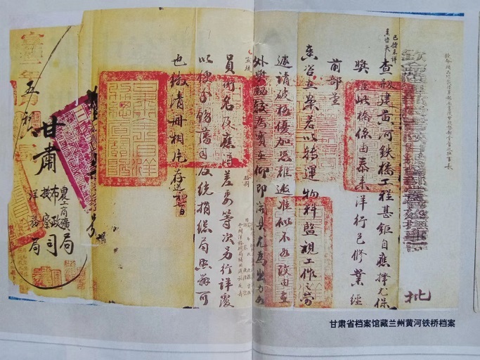 在古金城兰州架设横跨于黄河南北两岸的铁桥,曾是左宗棠的梦想,只因当时洋商索价过高而作罢。30年后,正值清末实行新政,黄河铁桥在陕甘总督升允和彭英甲的任上创修成功。建桥过程惨淡经营,艰苦备至,已人所共知。好在建设黄河铁桥形成的档案,归档于甘肃农工商矿总局,没有存于当时的布政使司,幸运地躲过了民国二年那一劫。甘肃农工商矿总局后更名为甘肃省署实业厅,民国十六年(1927年)甘肃省政府改实业厅为建设厅,这些档案存于建设厅。1949年7月,国民党甘肃省政府逃离前发出紧急命令:“转移前将政府档案做紧急处理”,重要档案进行“焚毁、埋藏、转移”,次要档案“从速列册销毁”。只因仓皇逃离,未来得及销毁。人民解放军从解放兰州的战火中把包括铁桥档案在内的许多档案抢救出来,由兰州军管会接管。2002年,《兰州黄河铁桥档案》入选首批《中国档案文献遗产名录》。