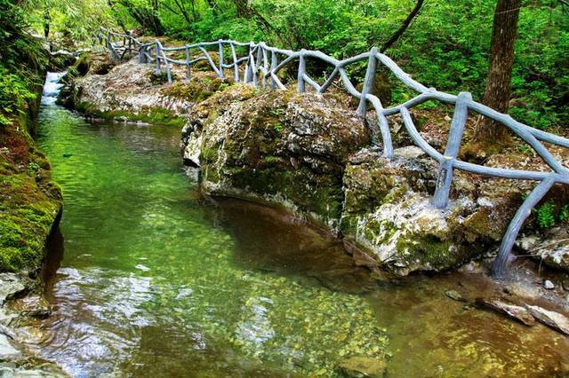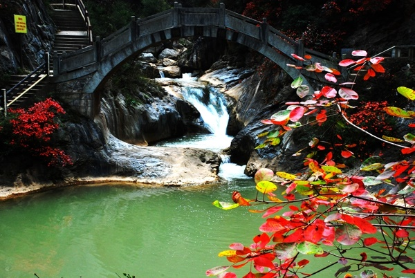 这里自然风光清幽绮丽,一汪汪潭水似明珠相串,一挂挂短小的瀑布迭次相连,峡内的山、水、石、树皆成风景;亭、桥、廊、榭,相映成趣。