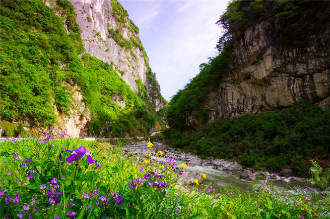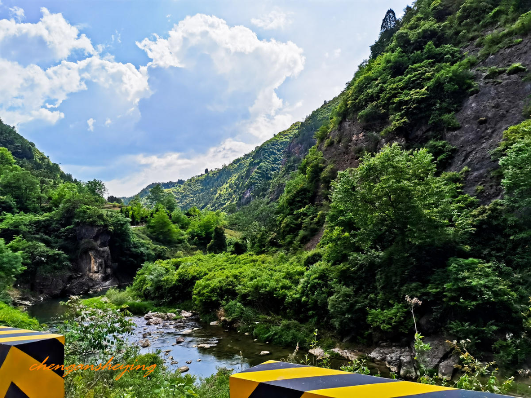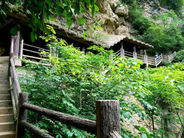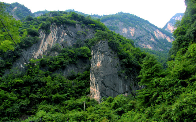 景区内青山对峙,奇峰峻秀,风景绮丽,悬崖绝壁上,古西狭栈道足迹犹存,有李可染大师《西狭颂》碑题。