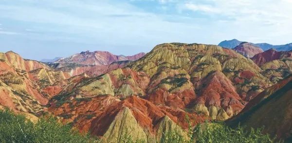 还有“色如渥丹,灿若明霞”的兰州丹霞,绵延百里,一片褐红,如一座熊熊燃烧的火焰山,壮丽而又炫目。