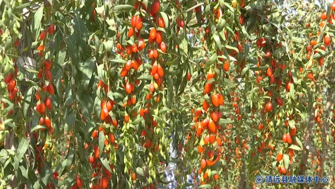 时下,靖远县的枸杞已进入大面积采收时节。走进五合镇枸杞示范基地,一串串红彤彤的枸杞鲜果挂满枝头,格外诱人。种植户们正抢抓晴好天气抢摘枸杞并进行晾晒,处处呈现一派忙碌的丰收景象。
