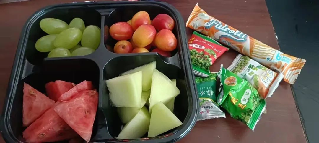 中午11点30分,外点及内点工作人员又开始负责发放午餐、中药和水果,饭菜朴实,胜在有滋有味,隔离人员经常为准备的饭菜竖起大拇指。