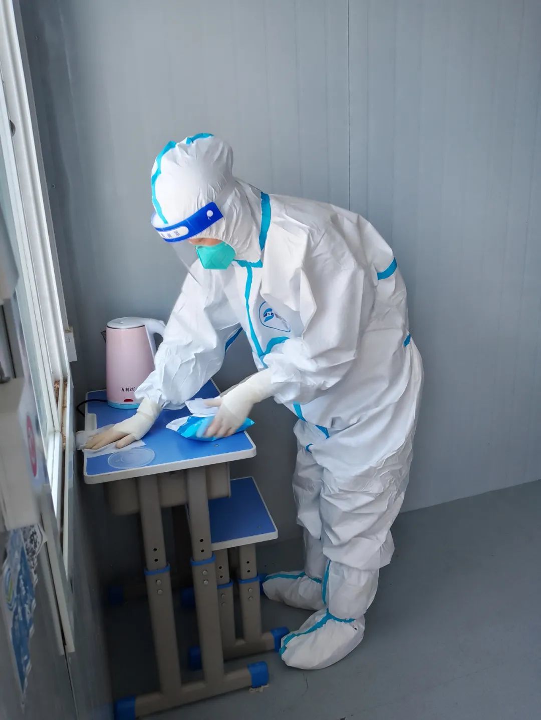 清晨5点闹钟响起,夏天天亮的格外早,所有工作人员开始洗漱,医护人员穿戴好防护服,紧张忙碌的一天又要开始了。