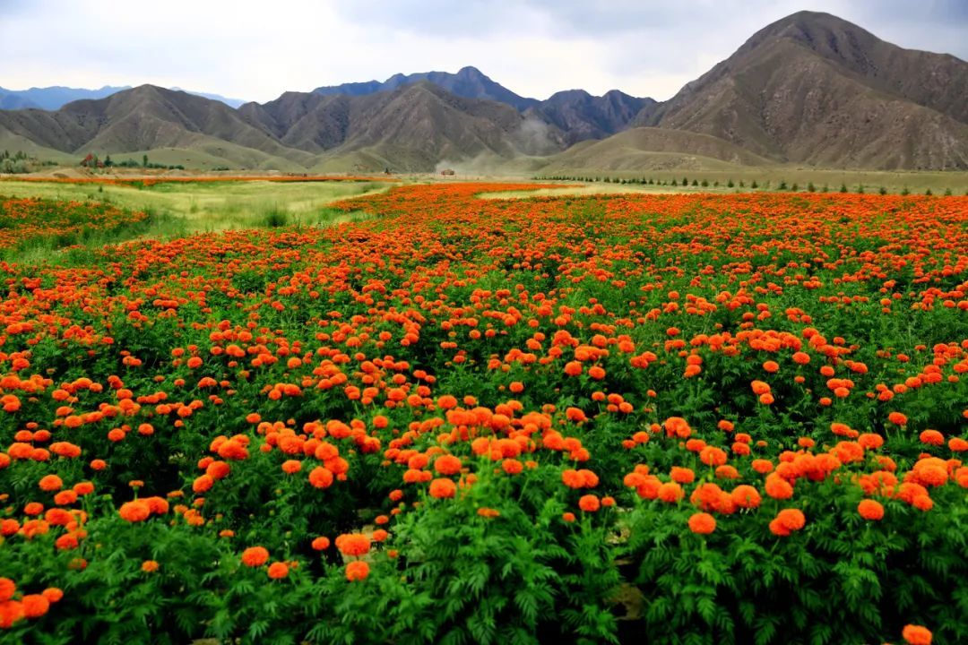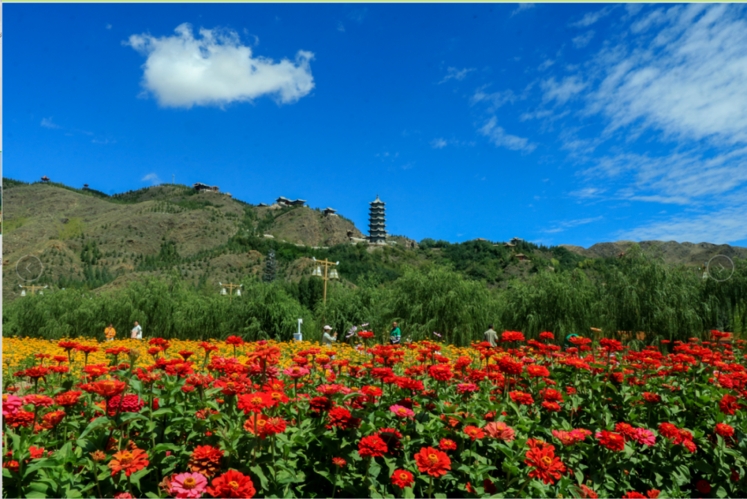 “全国生态乡镇”南坝乡位于地处永昌县南部,整个乡村高低错落,色彩艳丽的波斯菊、万寿菊、元宝枫在峰峦叠翠的祁连山下如锦缎般铺开,成片成片的向日葵金光灿灿,在蓝天白云下呈现出一幅如诗画卷。