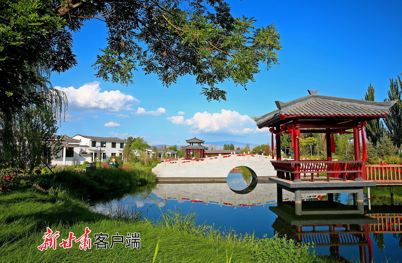 8月5日, 甘州区明永镇下崖村田畴碧绿,村居靓丽,小桥流水,景美如画。近年来,甘州区明永镇把壮大富民产业与推进乡村振兴紧密结合,采取“党支部+基地+农户”的模式,做大做强制种玉米产业,促进农业增效农民增收,推进美丽乡村建设,改善人居环境,提升了群众幸福感和获得感。