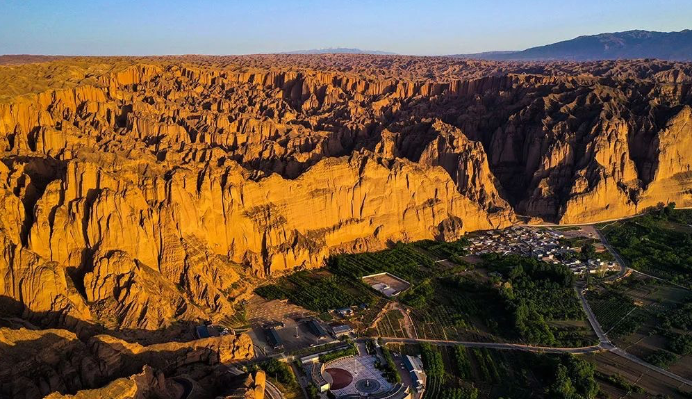 在景泰县有一处西北独有、全国罕见的自然景观——黄河石林。在黄河石林,一边是惊心动魄、粗犷凌厉的戈壁石林,一边是阡陌纵横、绿意盎然的龙湾村,动静结合,刚柔并济。