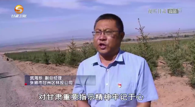 张掖市甘州区林投公司副总经理 武海珍:“将始终把习近平总书记对甘肃重要指示精神牢记于心,落实与行,按照省第十四次党代会描绘的蓝图,进一步擦亮绿色生态新名片,奋力打造甘州区南部生态建设新格局。”
