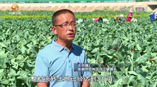 张掖市甘州区乌江镇镇长 王开锋:“通过高标准农田整治,整村流转土地已经达到3万亩,并对接了7家企业,建成我们的10万亩供粤港澳蔬菜基地,这个产业真正惠及到了我们8个村的2000多户老百姓增收致富,这个产业也真正成为带动农民增收的绿色产业,支柱产业还有持续增收产业。”