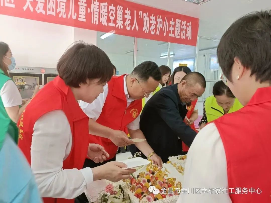 △7月1日,由金昌市金川区民政局主办、金川区幸福家社工服务中心承办的“关爱困境儿童·情暖空巢老人”助老护小主题活动在双湾镇敬老院举行。