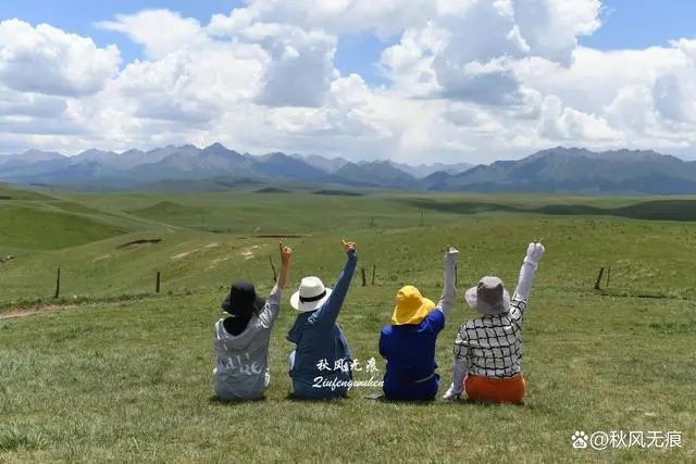 午后时分,来到军马场旁边的草地高处,一望无际的草原围绕着军马场的小镇,斑驳的光影洒在草原和巍峨的祁连山上,站立眺望或围坐草地,满眼都是清新美丽的风景。