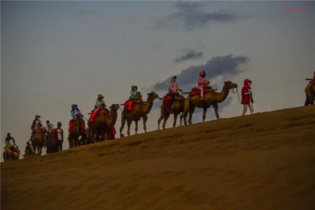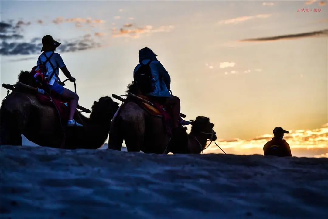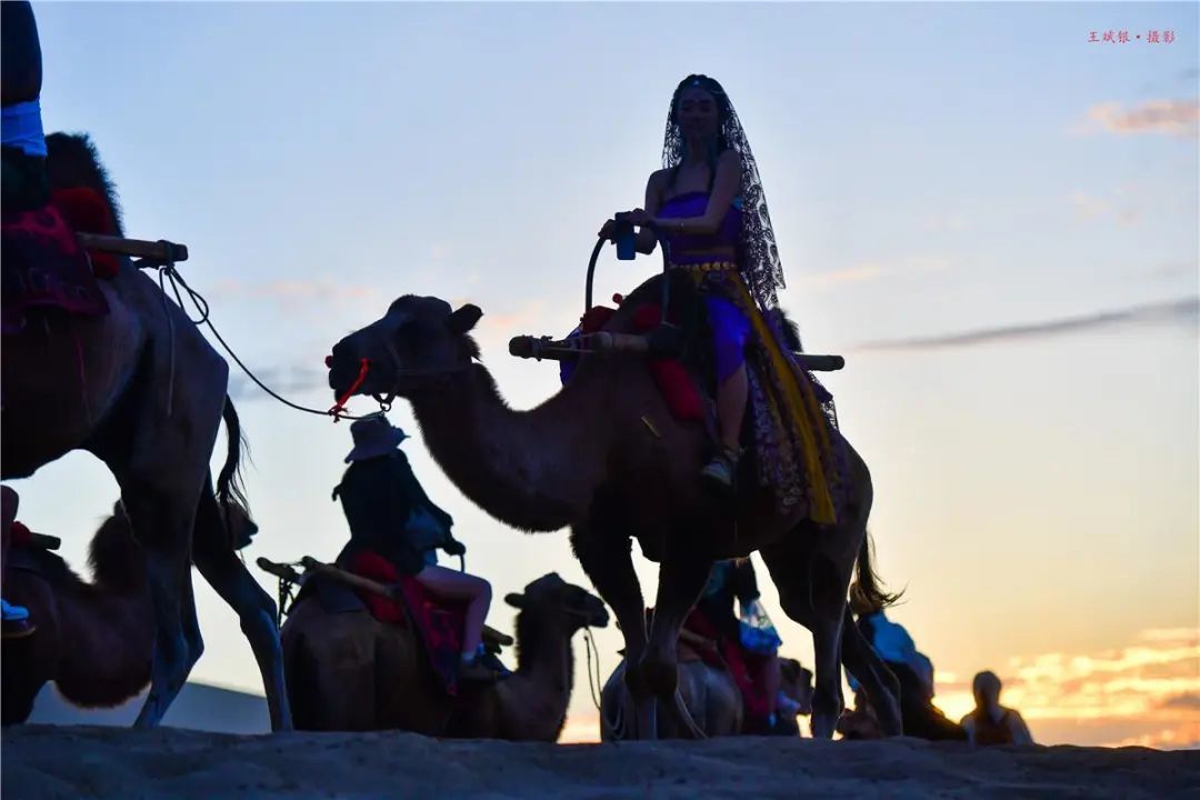 夕阳下,在驼背上摇曳生姿。