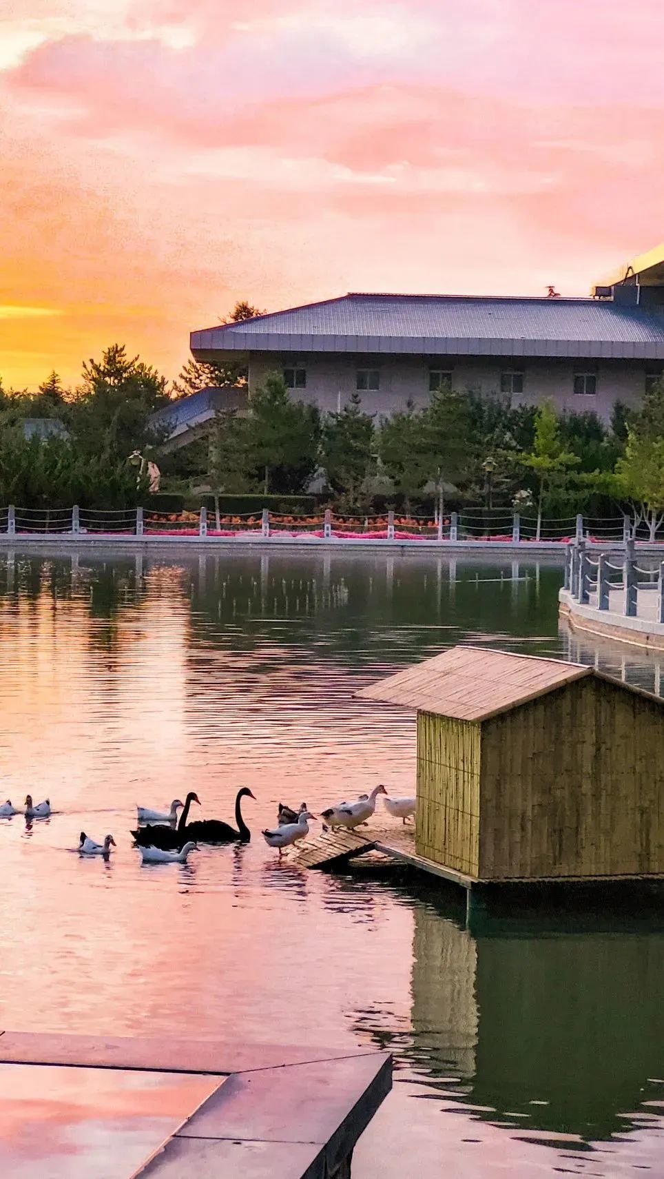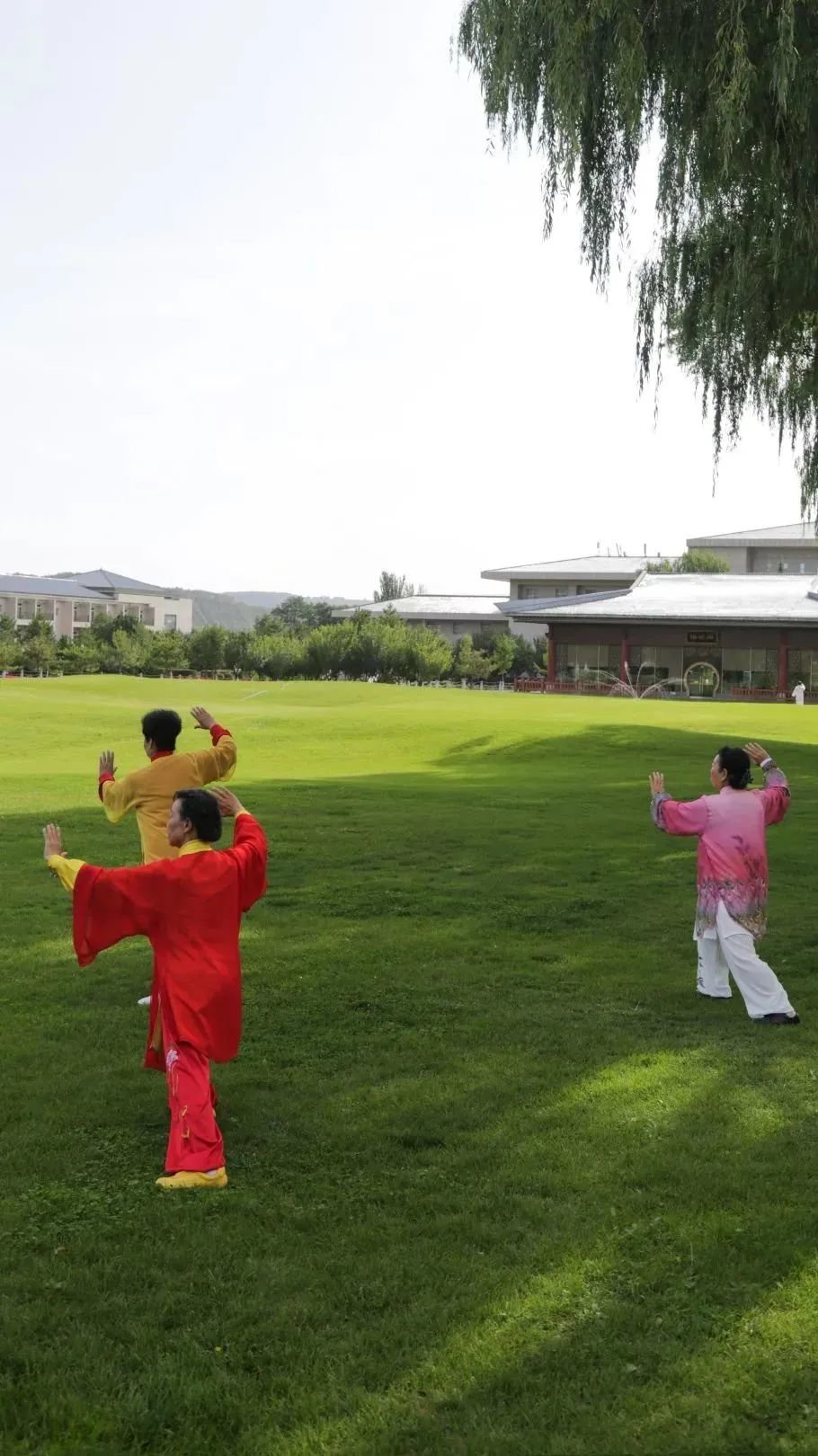 建筑古典考究,以明清风格为主,湖光山色,湖光山色,清新典雅,古朴自然,彰显着平凉悠久的历史文化和崆峒山“天人合一”的道教文化底蕴。