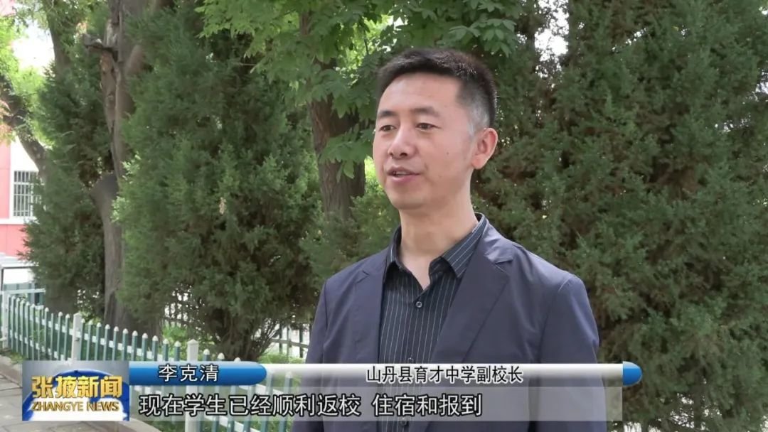 山丹县育才中学副校长 李克清:“现在学生已经顺利的返校、住宿和报到,坚决守住校园疫情防控的底线。”