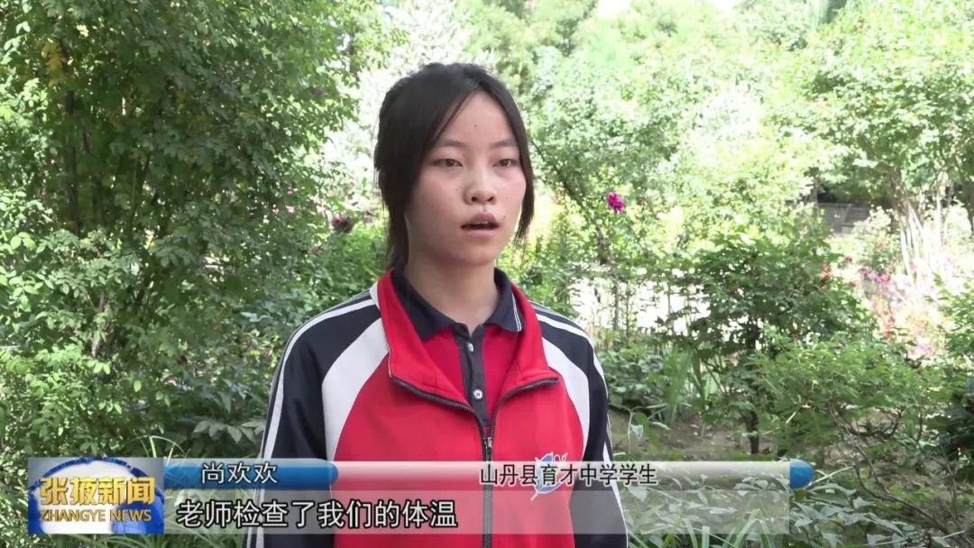 山丹县育才中学学生 尚欢欢:“老师检查了我们的体温,学校工作人员对学校进行了消毒处理,让我们能够在这里安心的学习。”