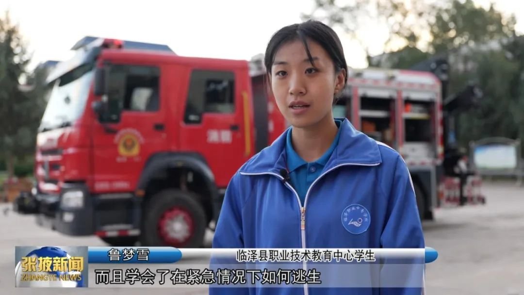 临泽县职业技术教育中心学生 鲁梦雪:“不仅增强了消防安全意识,而且学会了在紧急情况下如何逃生、迅速撤离,保障自身的安全。”