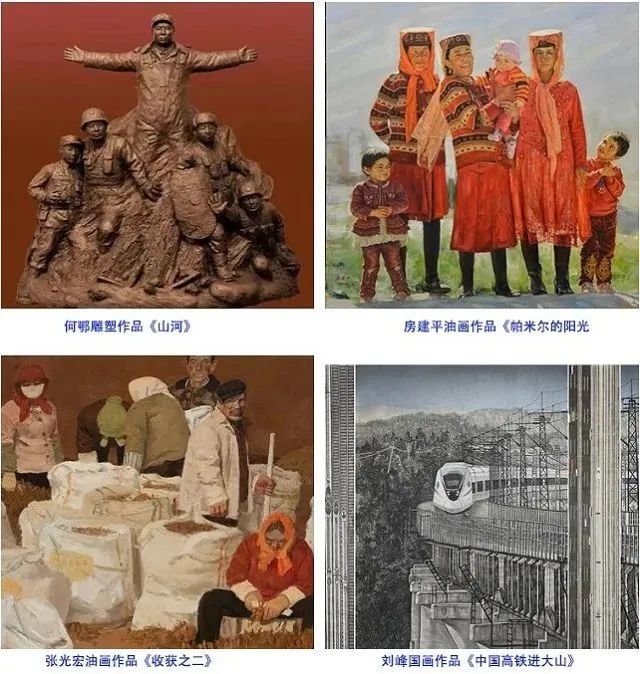 在此次我省入选的作品中,著名雕塑家何鄂创作的雕塑作品《山河》、甘肃画院房建平创作的油画作品《帕米尔的阳光》、兰州画院张光宏创作的油画作品《收获之二》、甘肃画院青年画院刘峰创作的国画作品《中国高铁进大山》4幅(座)作品成功入选第十三届中国艺术节全国优秀美术作品展览;甘肃省著名书法家张改琴的书法作品《望岳》、安文丽书法作品《龙门云冈联》、严文学书法作品《古诗二首》、曹恩东书法作品《鲁山山行》、杨东亮书法作品《建党百年赞》、颉江泊书法作品《 黄庭坚题跋一则》、赵世峰书法作品《王维诗二首》7幅作品入选第十三届中国艺术节全国优秀书法篆刻作品展览。