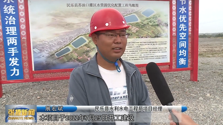 民乐县水利水电工程局项目经理 展宏斌:“本项目于2022年7月25日开工建设,今年计划完成一号、二号蓄水池建设任务,目前已完成年度计划的65%。”