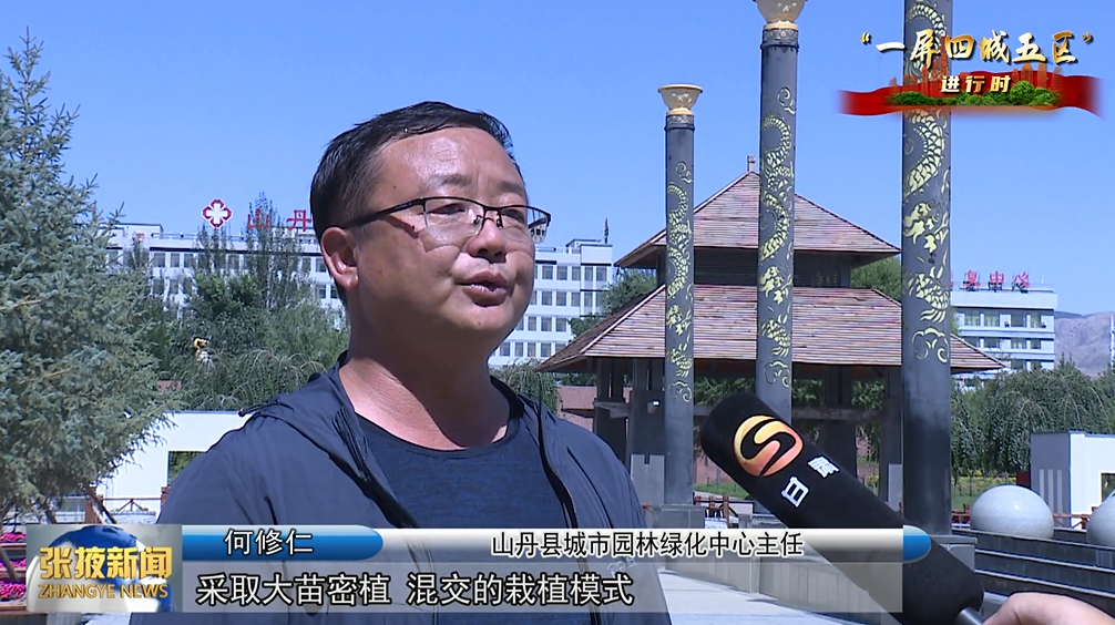 山丹县城市园林绿化中心主任 何修仁:“采取大苗密植、混交的栽植模式,全面改善城市环境面貌,全年新增各类城市绿地600亩,同时,我们加大养护管理力度,实现了城市绿地质量提升、栽培优化,管理精细的目标。”