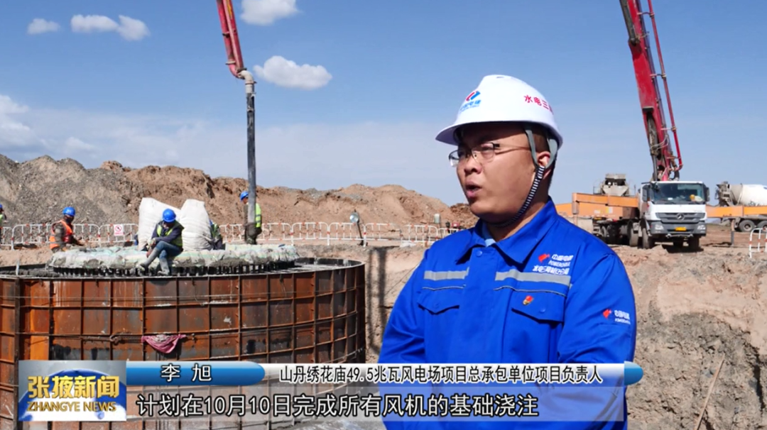 山丹绣花庙49.5兆瓦风电场项目总承包单位项目负责人 李旭:“计划在10月10日完成所有风机的基础浇注,按照计划是在12月31日并网发电。”