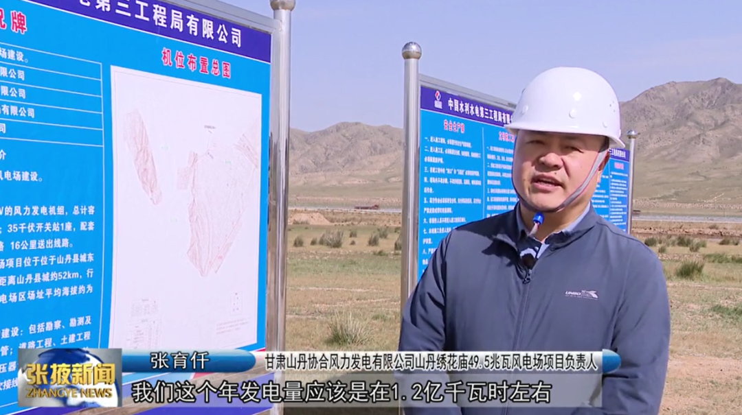 甘肃山丹协合风力发电有限公司山丹绣花庙49.5兆瓦风电场项目负责人 张育仟:“这个年发电量应该是1.2亿千瓦时左右,年利税能达到700万左右,本项目最大的优势是绿色发电。项目建成以后,每年可节约用煤4万吨,减少二氧化碳排放量可以达到12万吨左右。”