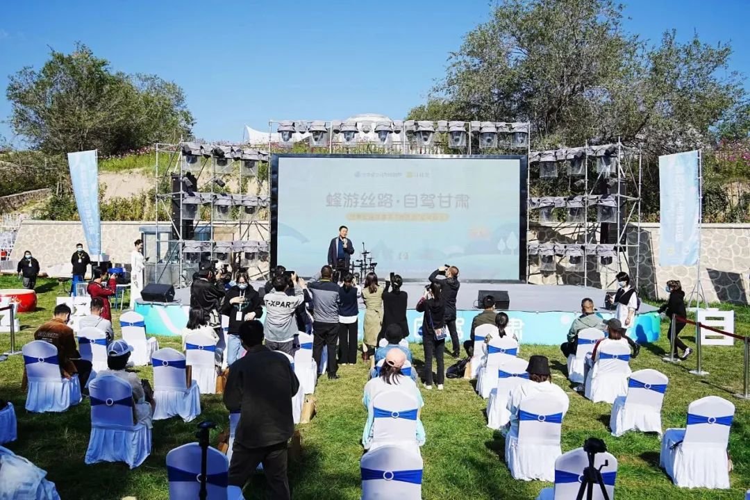 “甘肃除了海洋和岛礁地貌,这里拥有你见过的所有地貌,你尝试过开着车每天睡在不同的风景里吗?你可以在沙漠露营+骑骆驼,你可以在戈壁滩露营+篝火晚会,你可以在草原露营+骑马,你可以在湖泊露营+环湖骑行,你可以在古寨露营+体验非遗,你可以森林露营+红叶摄影,你可以雪山露营+手冲咖啡,你可以在冰上露营+滑野雪……”马蜂窝旅游户外玩法主理人为现场带来了本次活动的先导片。