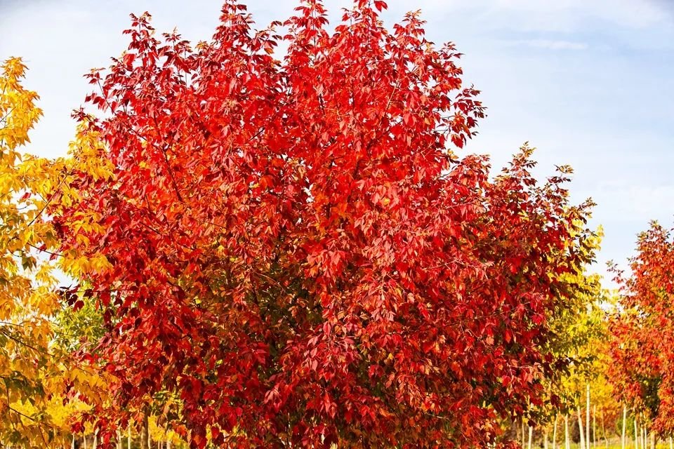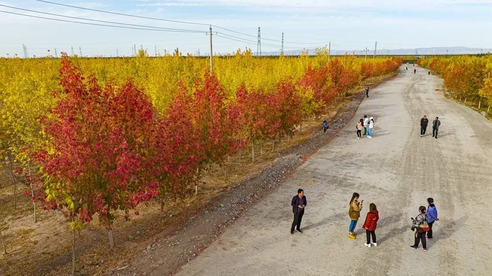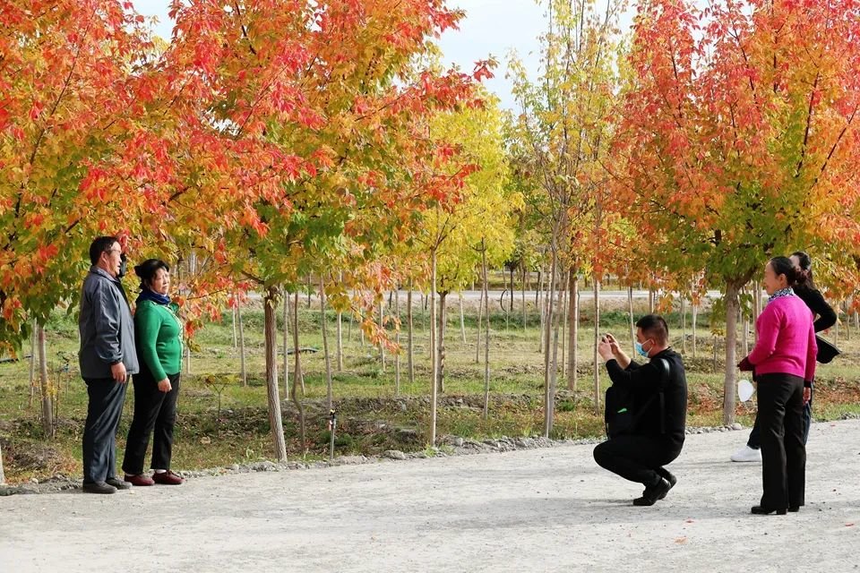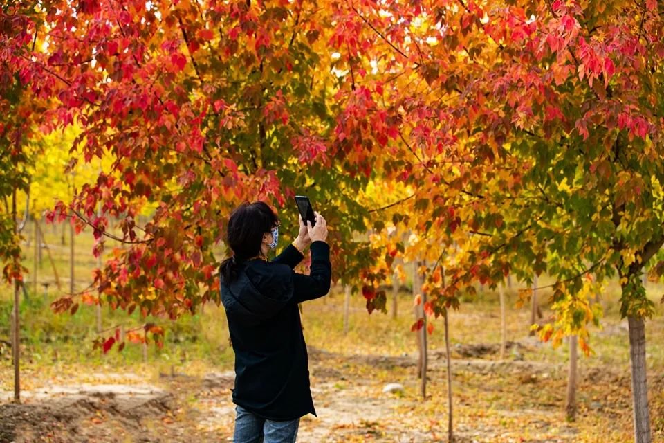 金秋时节,张掖奥林匹克森林公园枫叶进入了最佳观赏期,阳光洒落在红叶上,让红枫变得通透而又明艳,一片片枫叶犹如铺散开来的红霞,美不胜收,众多市民利用国庆假期纷纷到此进行打卡拍照。(成林)