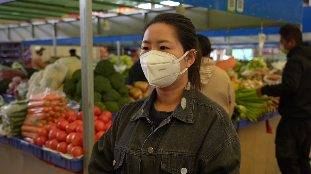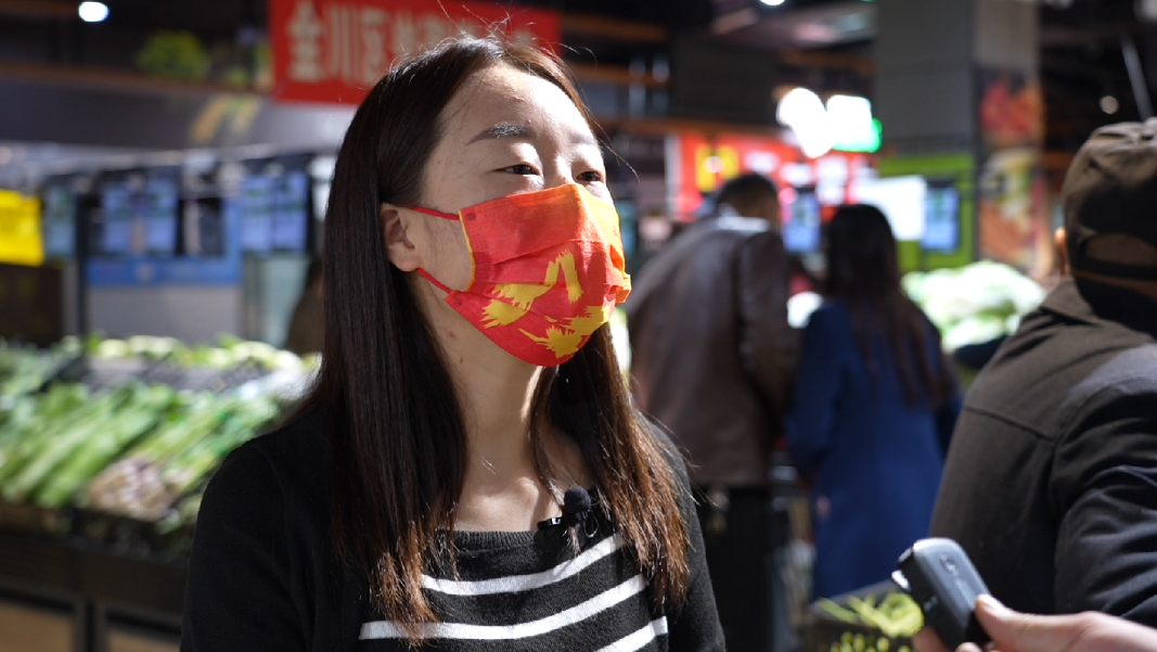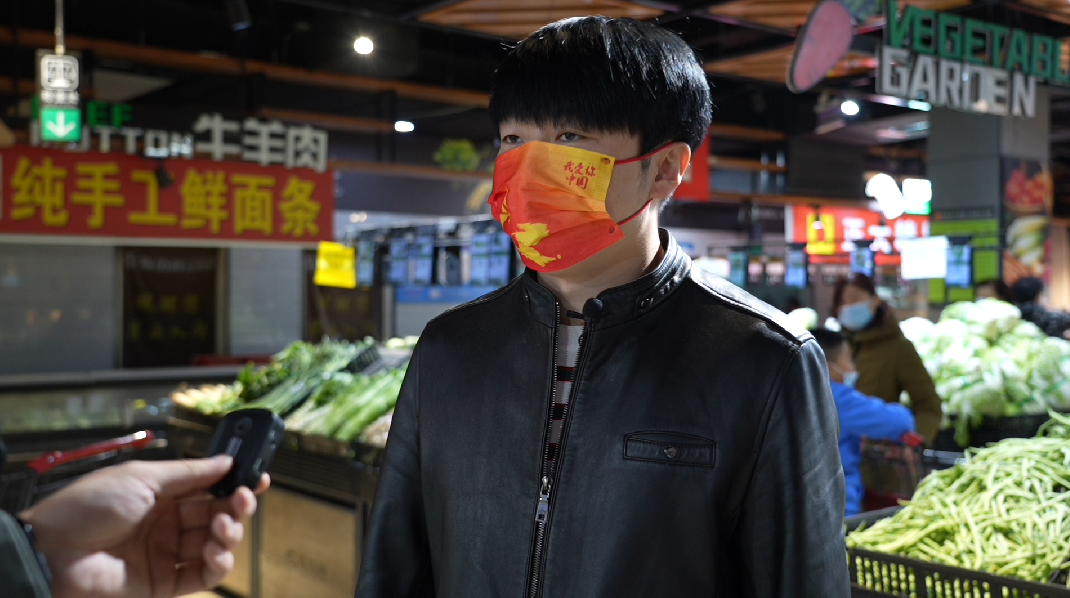 我经常来买蔬菜和水果,这个超市的蔬菜水果比较新鲜、比较齐全,都是明码标价的,虽然受疫情的影响,价格没有变化,我们作为老百姓,买的放心、买的舒心,这个才是最重要的。