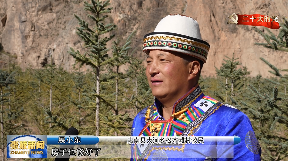 肃南县大河乡松木滩村牧民 展小东:“在党的领导下,房子修好了,路修平了,收入也高了,相信以后的日子会越来越好。”