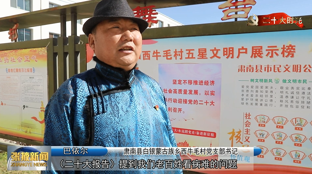 肃南县白银蒙古族乡西牛毛村党支部书记 巴依尔:“二十大报告提到我们老百姓看病难、农民的生活水平、推动乡村振兴等问题,使我们对未来有更好的信心。”