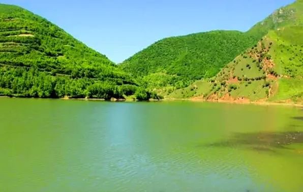 这里青山环绕着绿水,
