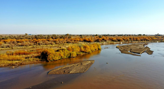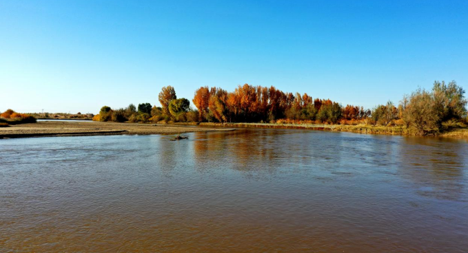 “惊秋黄叶遍,愁暮碧云深”。深秋时节,甘肃民勤石羊河国家湿地公园层林尽染,秋叶金黄秋草萎;天高云淡,阳光灿烂秋水凉,构成了一幅美丽天成的画卷。