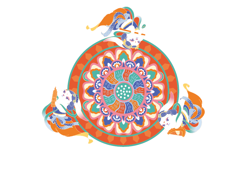 莲花纹与化生纹两相组合,使得画面带有鲜明的敦煌艺术风格。寓意纯净的莲花纹饰相伴化生纹,给人以美好的祈愿。
