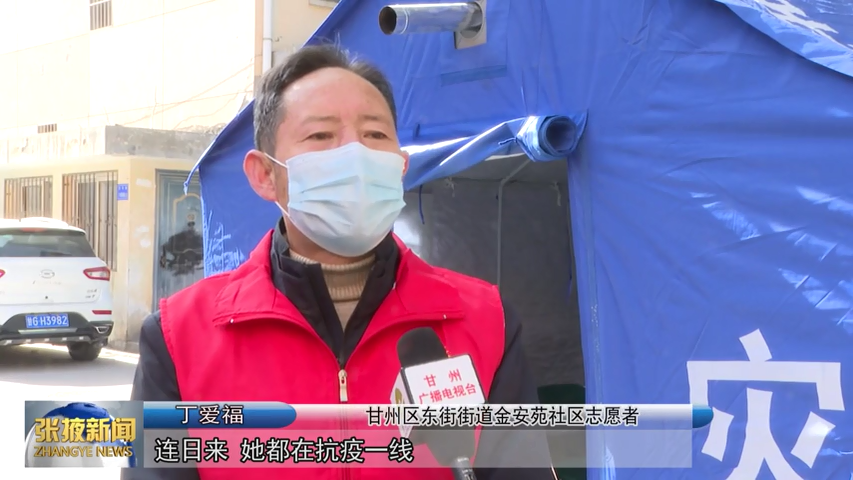 甘州区东街街道金安苑社区志愿者 丁爱福:“连日来,她在防疫一线,忙到顾不上休息,而我作为她的家人,又是一名共产党员,更应该在关键时刻协助妻子做好防疫工作。” (张掖市融媒体中心记者 何长凯)
