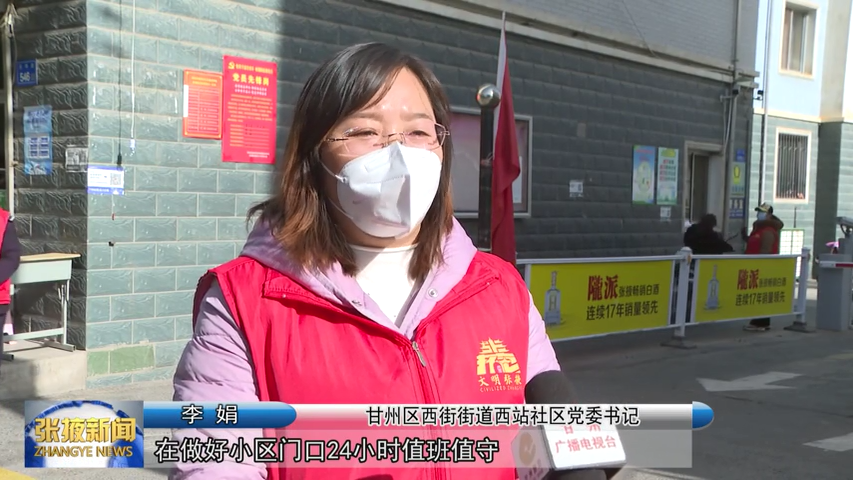 甘州区西街街道西站社区党委书记 李娟:“西站社区,在做好小区门口24小时值班值守、一扫三查的基础上,进一步做细、做实‘五个一 ’专班和‘六个一 ’防控措施的落实,把我们的服务做到居民的心坎里。”
