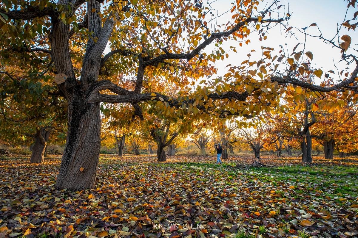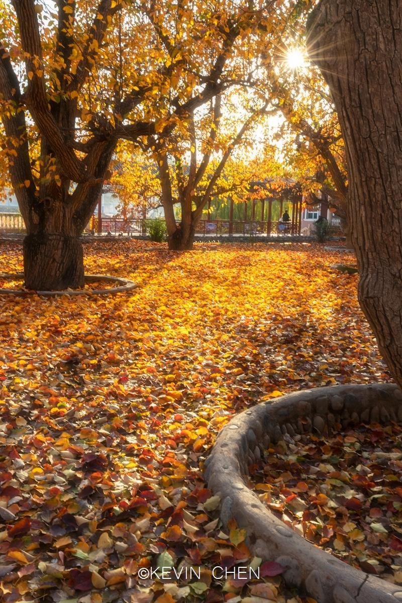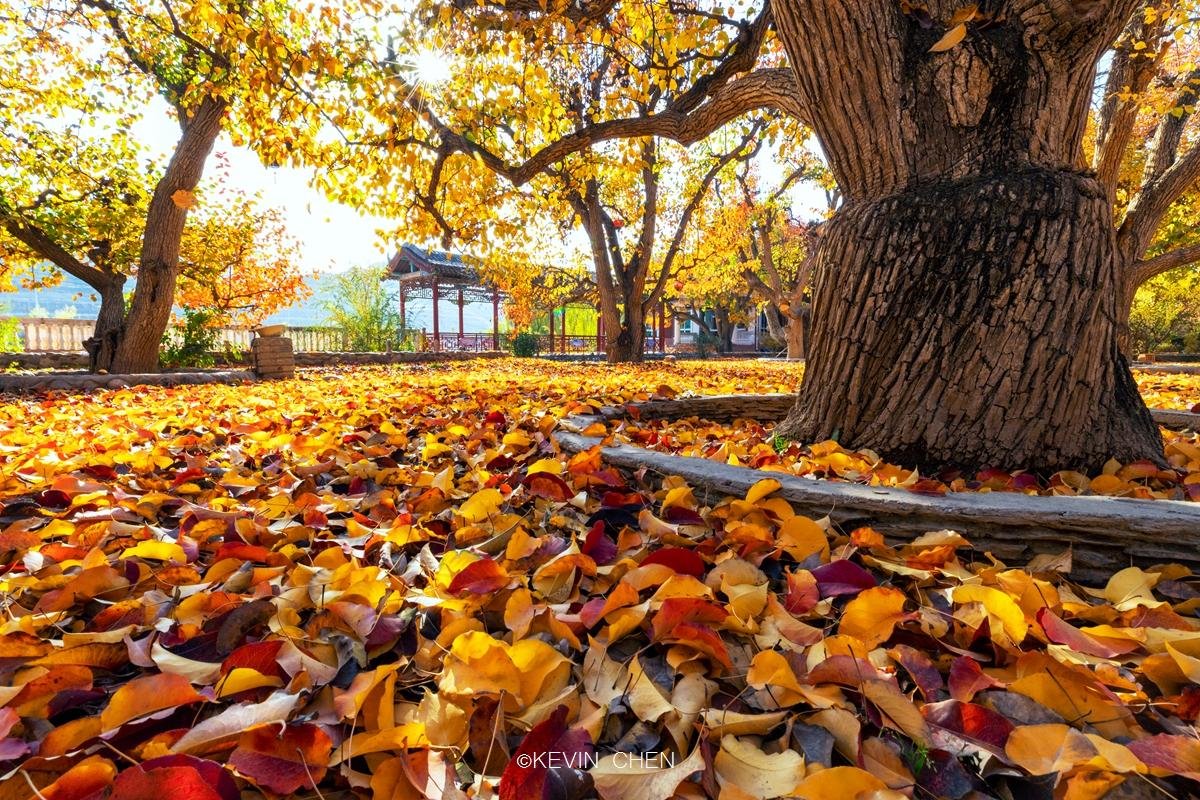 来到什川古梨园,苍劲古树红叶纷飞,一步一景都是画,每一处都美到让人移不开眼。据了解,深秋果实采摘完毕后,梨树的树叶在秋霜的洗礼下,逐渐褪去绿色变成黄色,最后变成了红色。今年因近两个月没有下雨,梨园树叶比往年红的早,红叶也比往年红得更加艳丽。远观梨园似一片火海,气势磅礴,行走其间,仿若置身于“车行十里画屏上,身走四方彩林中”的梦幻童话世界,吸引着四面八方的游客和摄影爱好者纷至沓来。