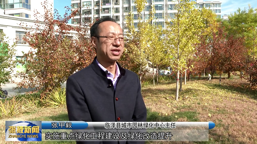 临泽县城市园林绿化中心主任 张甲毅:“高起点规划实施重点绿化工程建设及绿化改造提升,利用植物的色彩将彩虹元素积极融入绿化工程建设中,引进栽植胡杨、元宝枫、五角枫等苗木新品种。”